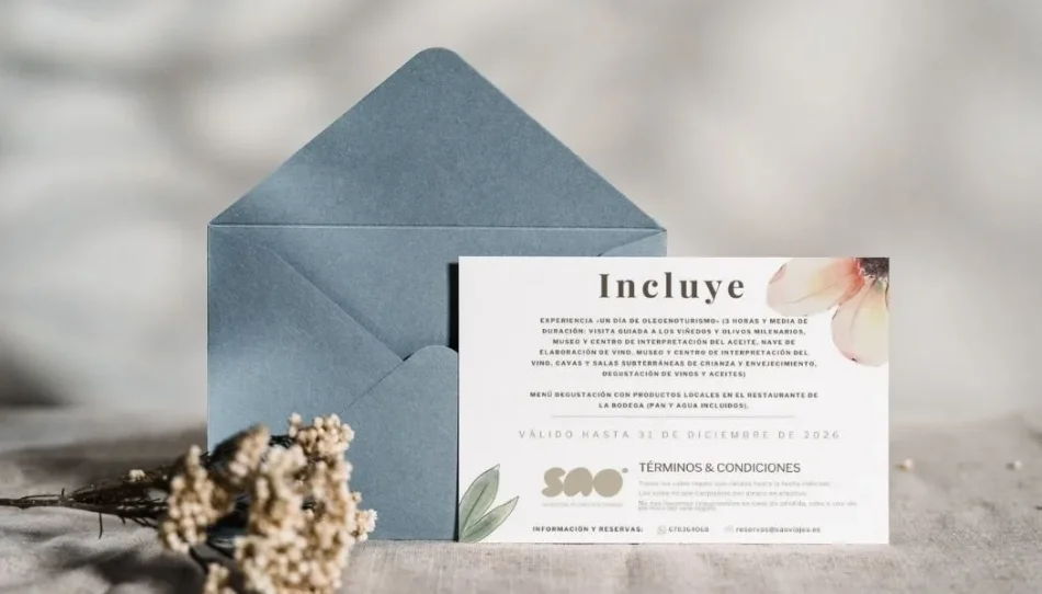 • Experiencia «Un día de oleoenoturismo» (3 horas y media de duración: visita guiada a los viñedos y olivos milenarios, museo y centro de interpretación del aceite, nave de elaboración de vino, museo y centro de interpretación del vino, cavas y salas subterráneas de crianza y envejecimiento, degustación de vinos y aceites)