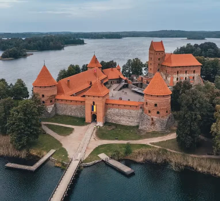La mañana se dedicará a visitar el espectacular castillo medieval de Trakai, ubicado en una isla en medio del lago Galvė, una de las postales más famosas del Báltico. Allí podrás probar el "kibinai", una empanadilla tradicional de la zona, y pasear por el entorno lacustre. Regresarás a Vilnius para disfrutar de tu última tarde y noche libre, ideal para despedirte de la ciudad a tu gusto.